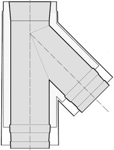 Bruba Abzweiger 45°, 0.6 mm, unten verlängert 153mm, V4A/Cr-Ni, Doppelwandig