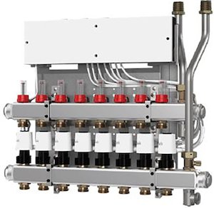 Danfoss EvoFlat Edelstahlverteiler SGC mit Icon-Regler mit 12 Heizkreisen, 230V